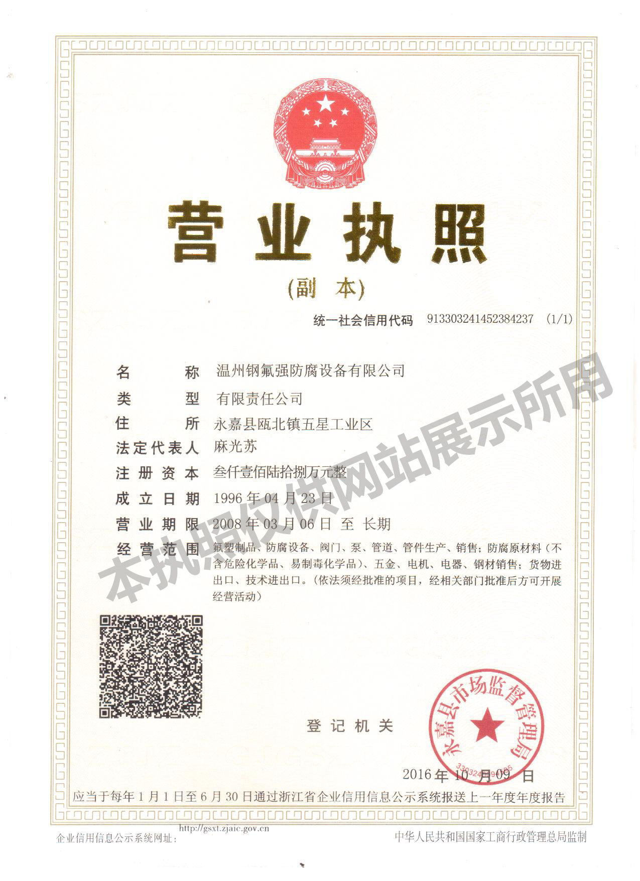 Wenzhou steel fluoride strong anti-corrosion Equipment Co.